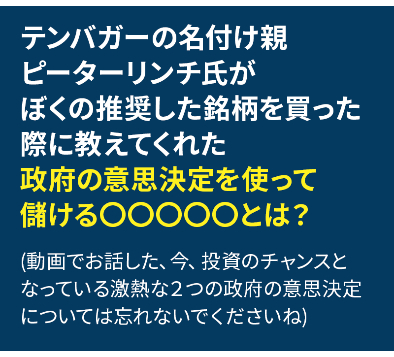 ぜひ第一話の動画をもう一度じっくりと視聴してください。 (ジムロジャーズの大企業の動きで利益を出す方法やピーターリンチの規制の変更を使って利益を出す方法など全てぼくが生で学んだ話です)