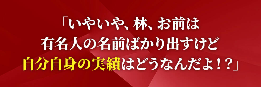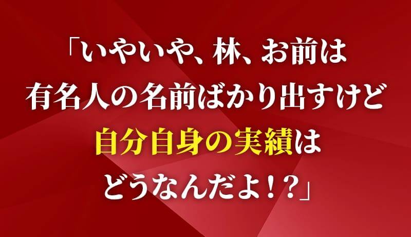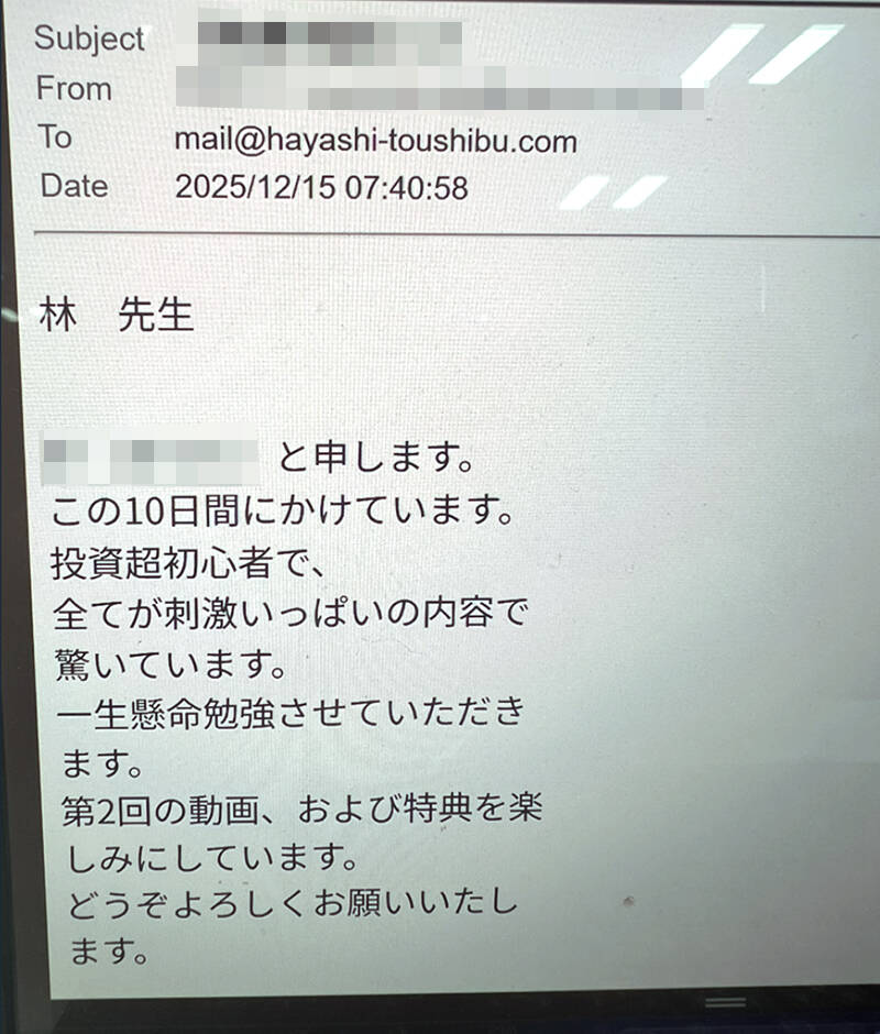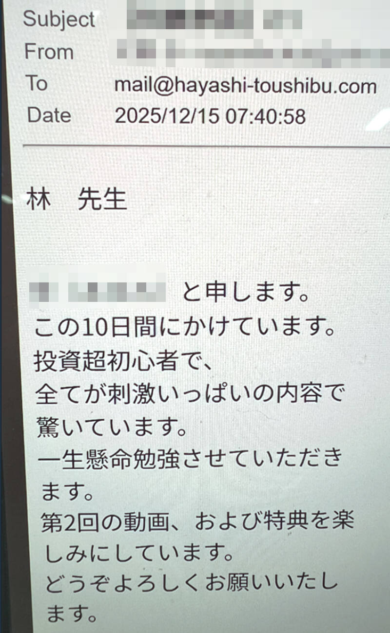 これで少しは信用してもらえましたか? ここまでの説明で「もしかしたら林は本物かもしれない」と思ってもらえてますか? (そのために本でも書いていない過去の話をしましたからね) もし、そう思えたならこれから10日間で勝ち続ける世界最高峰の投資ノウハウを伝授しますので、ぜひ動画やメールを見てくださいね。 (絶対に後悔はさせません) しかもこれから教えるノウハウは、 性別、年齢、経験、知識、何も関係なく
