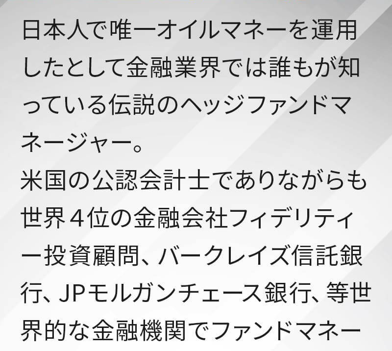 と思われるかもしれませんね。 今日は正直に全てを告白しますね。 ぼく自身が「金融業界の最高峰に居た」から その裏側の全てを知っているのです。 もちろん居ただけではありません。 世界最高峰の投資家達から学び そして肩を並べて実践してきたからこそ、