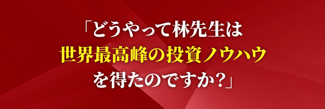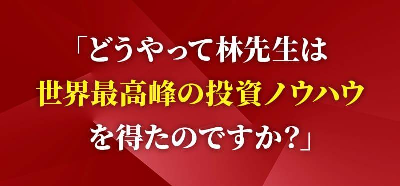 こんにちは、林則行です。 動画を見てくださりありがとうございます。 (きっとご覧になったあなたの投資の常識は180度変わったことでしょう) いきなり、