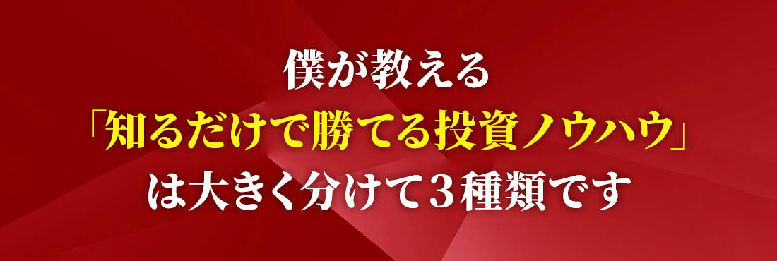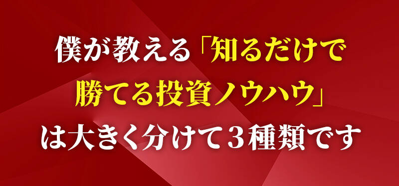 僕が教える知るだけで勝てる投資ノウハウは大きく分けて3種類です。