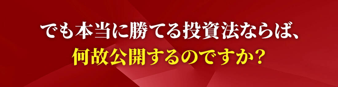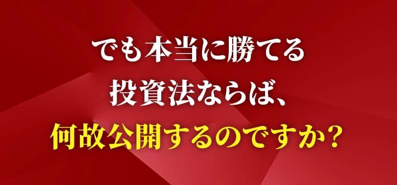 ということなのです。 考えてみてください。 どうして彼らだけ毎年莫大な利益を作れるのでしょう? 不自然だと思いませんか? それには秘密があるのです。 ぼくが世界で直接見てきた秘密を動画でお話しました。 (実は見てきただけではなく直接、世界最高峰の投資家から学び肩を並べ実践し長い間、その世界の中心にいたのです) 実際に動画を見た人からは