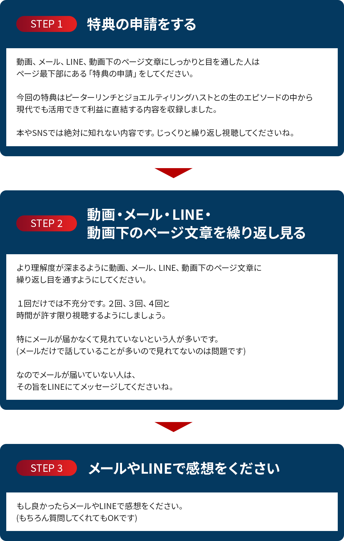 しかもぼくは彼らのノウハウを学んで自分自身で世界の金融業界で 成功への道を駆け上がってきました。 この効果実証済みのノウハウを全てお教えするわけなので あなたも絶対に成功するに決まっています。 (いや、ほんと、すごい投資ノウハウなんですよ) できれば動画は3回以上見てください。 動画下のページ文章やメールもです。 繰り返せば繰り返すだけノウハウの理解度は深まって 結果が出るようになってきますからね。 そして繰り返し視聴した後は、 2日後の19時に 第2話をお送りします。