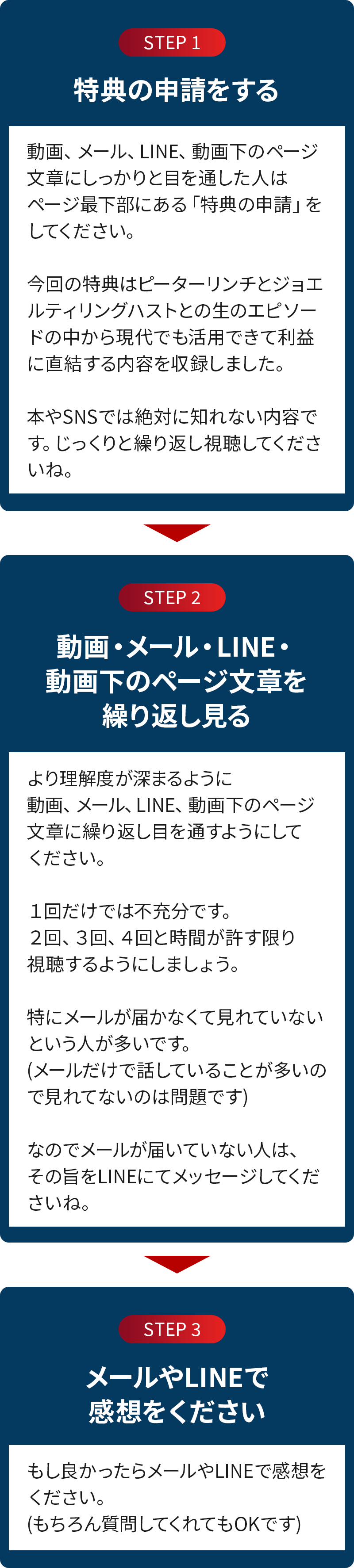 ここまでしっかりと読んでくれてありがとうございます。 動画、動画下のページ文章、メール、LINEに繰り返し目を通してもらえたら あなたの投資家としてのレベルは何段階もアップすることになります。 もしかしたら動画や文章が長く感じたり難しく感じているかもしれませんね。 でもそれも最初だけです。