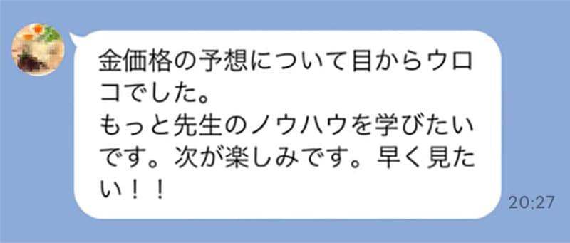 ぼくも書籍で金価格が上がると予想をした責任や証明として 資産の大半を金に変えていましたので資産が膨れ上がりました。 (出版後の講演会で証明として資産の大半を金にします、と宣言をし続けていましたので講演会に来られた人は知ってますよね) この金価格の予想法の種明かしは動画内で行っていますが、 今までの常識がひっくり返ったのではないでしょうか? (金価格を操れる存在がいるという件です。詳細は動画にて) このノウハウさえ知っておけば金価格は簡単に分かります。 利益に直結するお話なのでしっかりと覚えておいてくださいね。