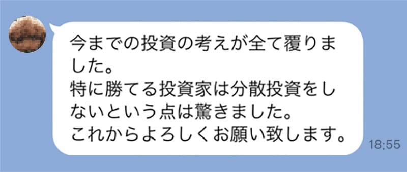 では、何故答えを教えるだけではなくて 裏側の理由の解説もするのでしょうか? それは投資というのは自分の中で確信が無ければ 突然、怖くなって狼狽売りをしてしまったり 本来は売るべきタイミングで固執して売らなかったり 間違えた判断をしてしまうからです。 ですから投資は「答え」を信じるために 「理由を理解すること」が大切なのです。 ぼくは「答え」と「理由」をセットでお教えますから ダントツで結果が出るようになるのです。