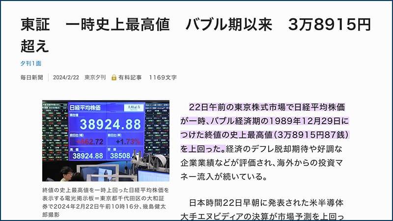 この3STEPが必要になるのです。 (ですが多くの人は上げ相場や下げ相場の始まりや終わりを掴めません) 例えば日経平均がバブル以来の最高値を更新したとニュースになったら
