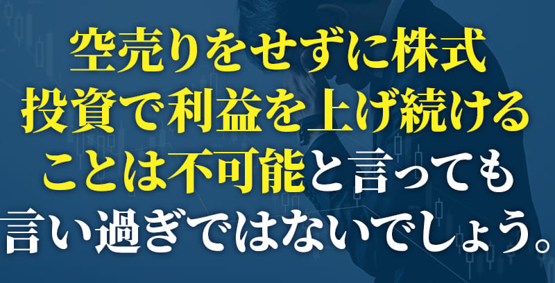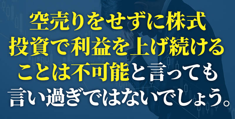 ハッキリ言って空売りをせずに株式投資で利益を上げ続けるというのは 不可能と言っても過言ではありません。 (もちろん完全に不可能ではありませんが、難易度は数十倍にはなるでしょうね) ただ僕が知る限り、日本国内において正しい空売りのノウハウが 知れ渡っている様子はありません。 (そのぐらい空売りのノウハウについては情報格差があります) その結果として「空売りは危険」「空売りはしない方がいい」と言った風潮がありますが、 実際は「空売りをマスターしてこそ」投資が面白くなってくるのです。 動画では一番簡単な空売り法をお話しましたね。