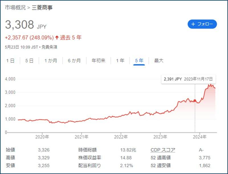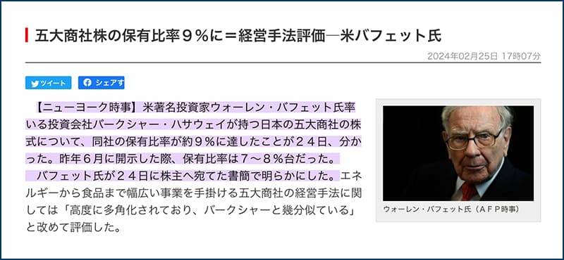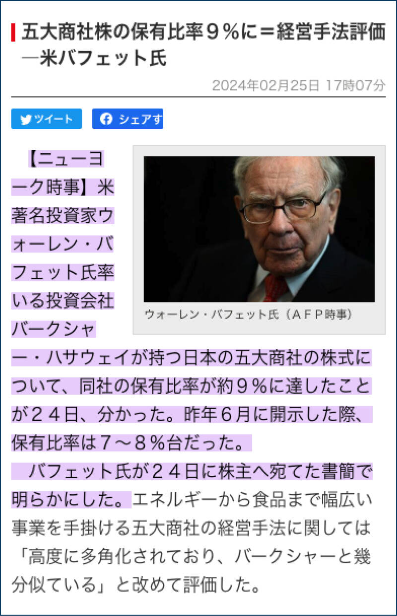 ウォーレンバフェットが買い増しをしていると知ったら既存株主はどう動きますか? 簡単ですね。上がると信じて売らないでしょう。 では商社株を持っていない投資家はどうするでしょうか?
