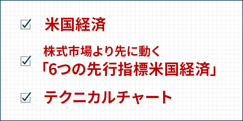 この3点で相場の転換日を決めています。 (このノウハウは広まりすぎると大きな金融業界の勢力に公開の停止を迫られるかもしれません) そのぐらい重要なノウハウなので今から文章でも軽く説明しますが、それだけでは不充分なので特に2話の動画は繰り返し視聴しておいてください。 では説明します。 まず大切なのは米国経済の未来予測です。 動画で詳しくご説明したことですが、 「日本市場は米国経済次第で決まる」 ことは覚えていますか? 日本の市場は全て米国経済次第で決まるのです。 既に日本の株式市場の大半は海外の投資家です。 ですから米国の経済と必ず連動するということですね。 ですから、端的にお伝えすると米国経済だけを見ておけば日本市場は丸わかりなのです。