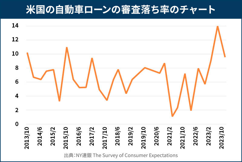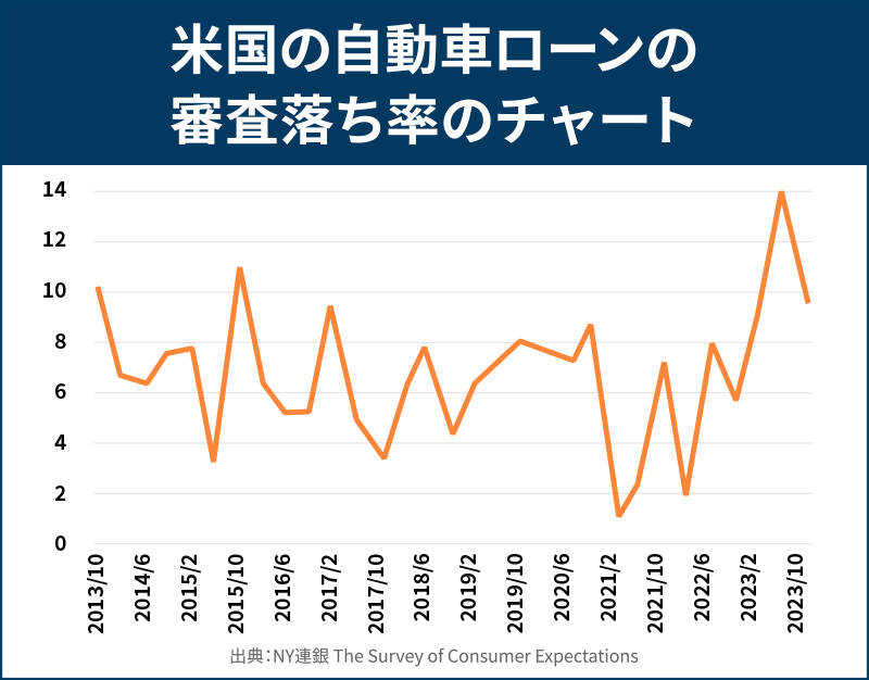 さて次の問題です。 以下は米国の自動車ローンの審査落ち率のチャートになります。