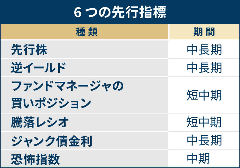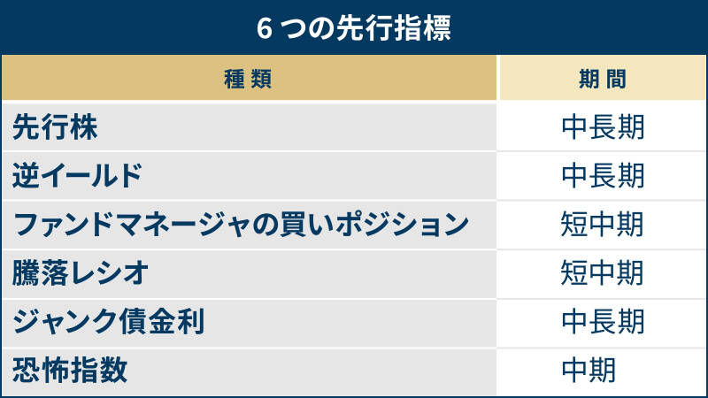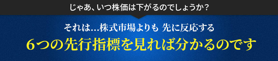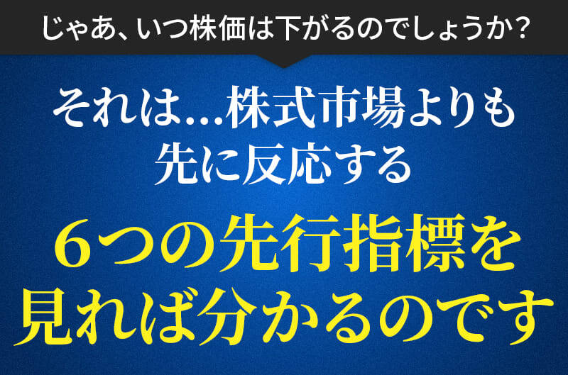 これらの指標は株式市場よりも早く反応します。 つまり株式市場が上がったり下がったりする前に動き始めるのでこの6つの指標を見ておくと株式市場の転換日が近づいていることが分かってくるのです。