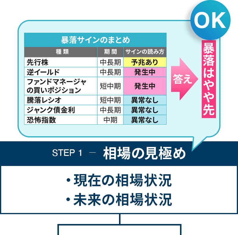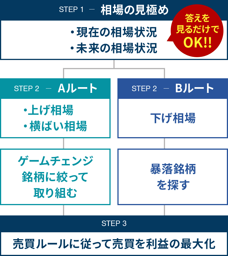もちろん答えを教えるだけでは成長しませんから 答えとセットで理由も解説していくことにしたのです。 つまり、STEP1の相場状況の見極めは 「答えそのもの」を知ることができる 環境を整えたということです。
