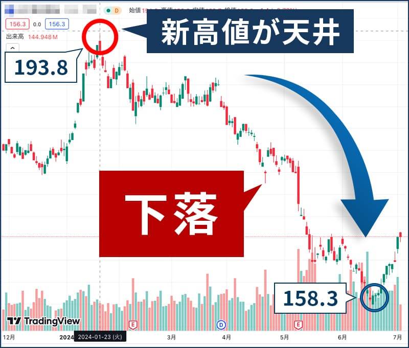 新高値を見極めのポイントにするのは 効率的にゲームチェンジ銘柄を見つけるためです。 もちろん新高値を更新したからと言って 全てが良い銘柄ではありません。 反対に新高値を天井として株価が下落をする銘柄も 数多く存在するのは事実です。