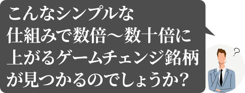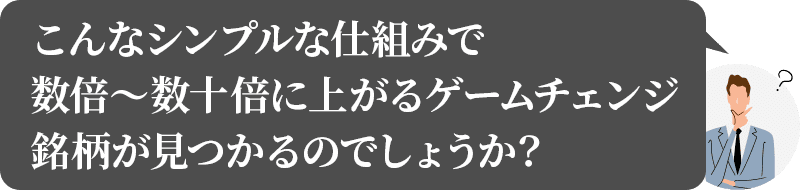 はい、たったのこれだけの作業でゲームチェンジ銘柄を 発掘することができました。とても簡単でしょう。