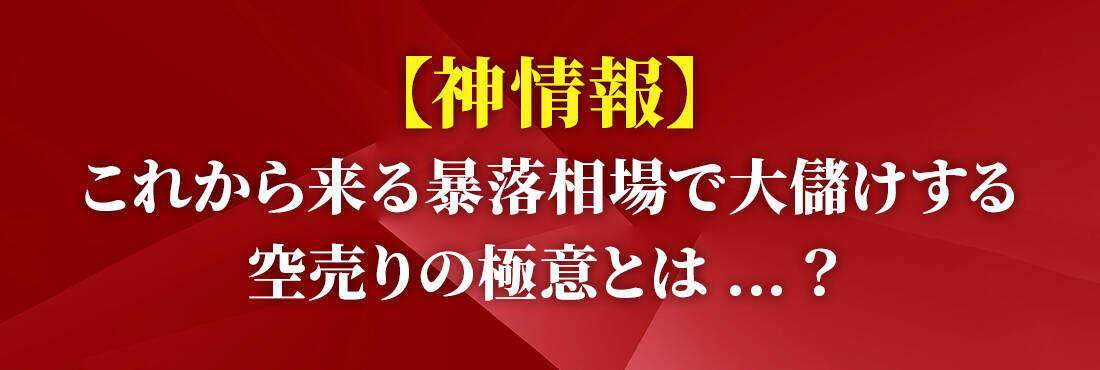 世界最高峰の投資家たちから受け継ぎ、ぼくも世界最高峰の投資家となり大きな成功を収めた再現性が極めて高い投資ノウハウを、次はあなたに継承するということなのです。 ぜひ楽しみにしながらぼくからの動画、メール、LINEやページの文章を読んでくださいね。 (それだけで投資家としてのレベルは2段階3段階上がるとお約束します) そして下げ相場では暴落する銘柄を特定して空売りをします。