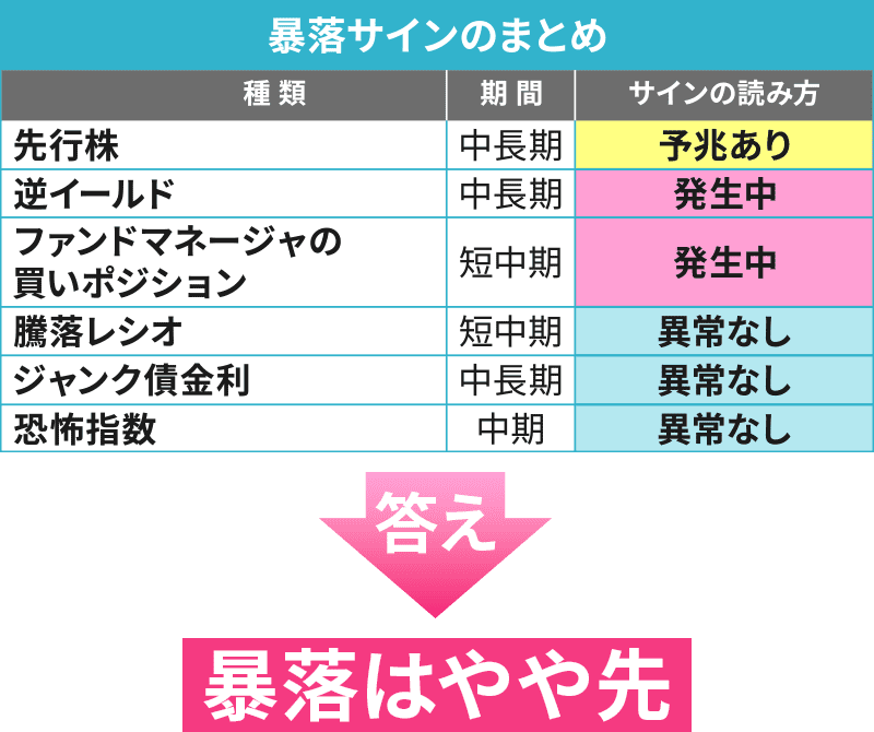 それはこの6項目には株式市場の変動の引き金となるものもありますし、単純に先に動く性質のものもあるのです。 例えば、ジャンク債金利の話をすると、 債権の投資家は株式投資家よりもリスクに敏感(びんかん)です。 なぜなら、債権は会社が潰れなければ利益が出るからです。 株式投資家は「上がるか」「下がるか」を見ていますが、 債権投資家は「潰れないか」だけを見ています。 その分、リスクにはいち早く反応するのです。 具体的にお伝えすると、 株式市場が下落する前に債権の利回りが上がります。 もっと細かく言うと国債とジャンク債の金利差が 広がるのです。 不景気が来そうになると債券投資家はリスクの高いジャンク債を売り 安全性の高い国債を買うので国債とジャンク債の金利差が広がります。 ここで「なぜ債券投資家はジャンク債を売ったのか?」を 考えてみましょう。 それは「景気が悪くなる何かしらの情報を得た」という事です。 多くの債券投資家が景気を悪くなると予想して動いたということは そのうち反応の早い株式投資家も保有株を売り始めます。 保有株が売られて尚且つ債券投資家が掴んだ景気悪化のニュースなども 流れ始めたとしたら、どうなるでしょう...? こぞって保有株を売り始めます。 売りが売りを呼び株価が下がっていくのです。 もちろんこれは6項目の1つですので、 この1つだけで判断はできません。 (他の指標の説明は2話の動画を見てくださいね) ですが6つの先行指標の4~5個が 株価が下がる前の動きをしていたら 間違いなく近いうちに株価の暴落が来るのです。 逆もしかり。株価が上がる前も 6つの先行指標は先に動きます。 なので天井や底が分かるという事になるのです。 ここまで読んだあなたは「正直、米国経済や6つの先行指標を自信を持って読み解ける気がしない...」と感じているのではないでしょうか。