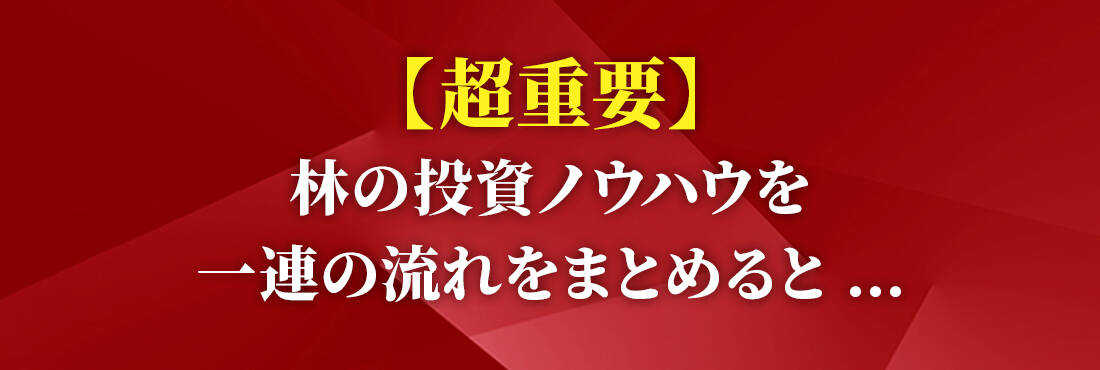 あまりにも反響が大きかったこともあり少し話過ぎてしまった箇所の カットをした方が良いのではないか...と検討されているようなのです。 (まだカットしていないとの事なのでその前に必ず動画を見てくださいね) 特にゲームチェンジ銘柄(テンバガー銘柄)を見つける裏法則や 下げ相場で暴落銘柄を見つけて空売りする方法などは ビックリされたのではないでしょうか? 私が世界最高峰の環境で戦って勝ち抜いてきた手法ですし、 実際に書籍で公開した予想も見事に的中していますよね。