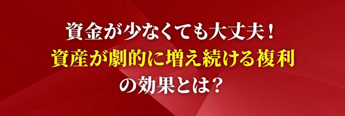 もちろんできます。確かに資金が多ければ多いほど利益額は大きくなりますが、 最初の資金が少なくても投資をすることで増えていきますから安心してください。 それほど複利の効果というのはすごいのです。